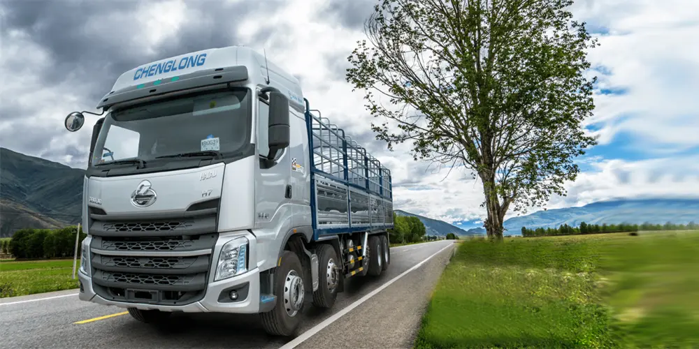 Los tractocamiones Chenglong H7 fabricados por Dongfeng Motor Corporation (China) se venden en leasing.