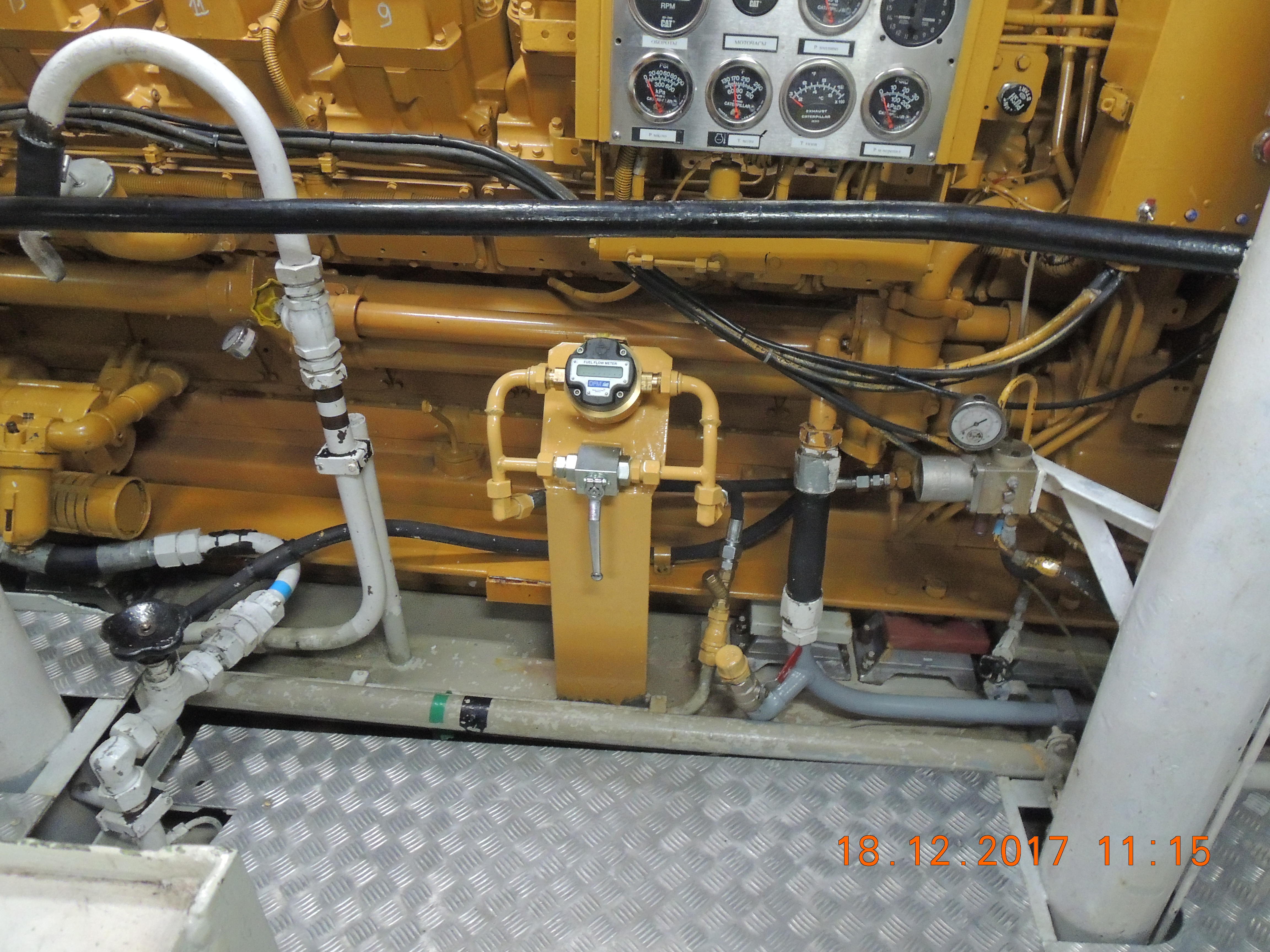 The flowmeter is mounted on the fuel feed line to the engine.